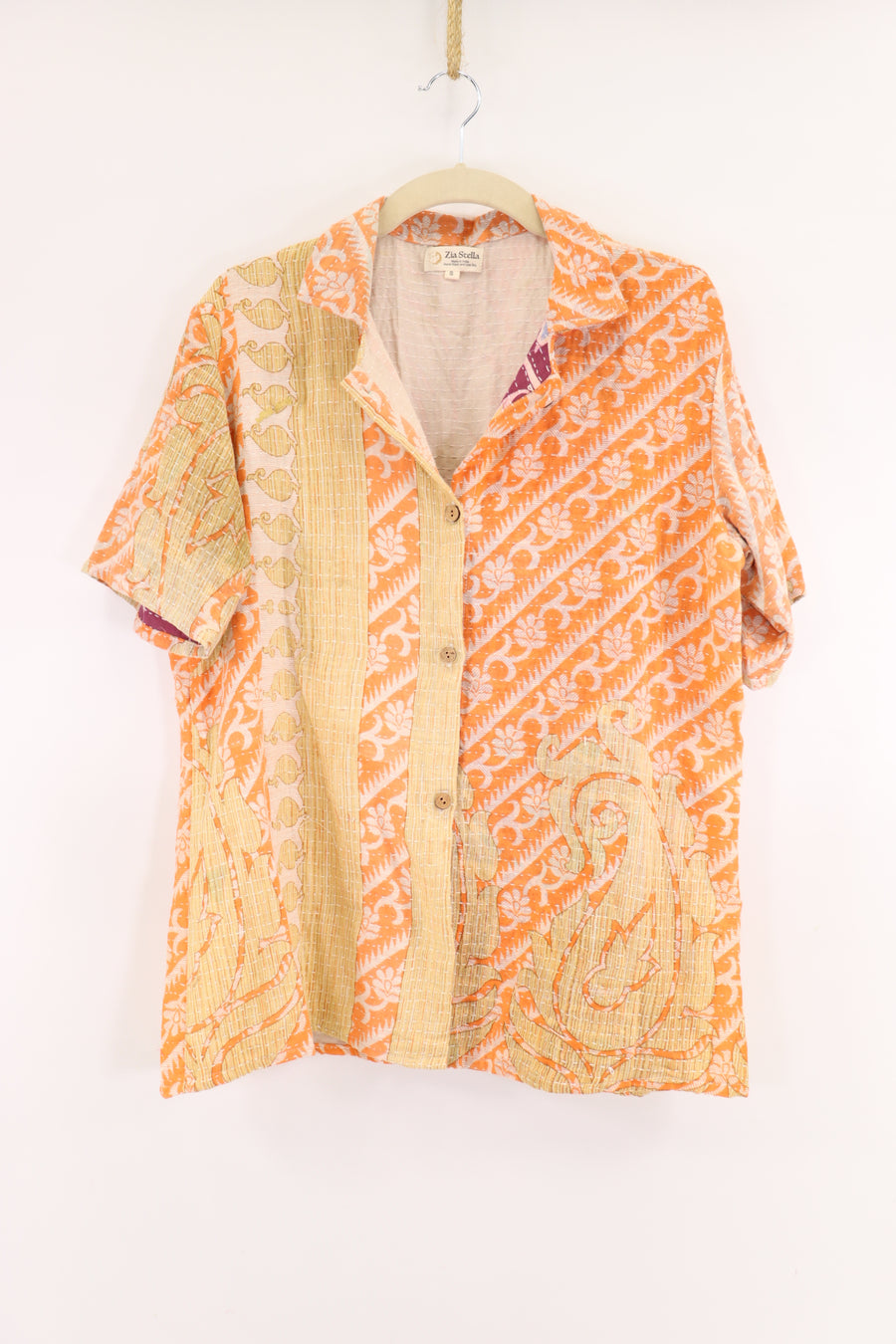 Our Sage Top is easy to wear and easy to love. Lightweight and soft cotton kantha fabric makes this short sleeved, button down top a boho dream. Made from vintage sari fabric, each will be unique.